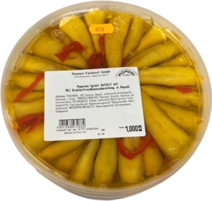 Peperoni (grün) gefüllt mit Kräuterfrischkäsezubereitung
