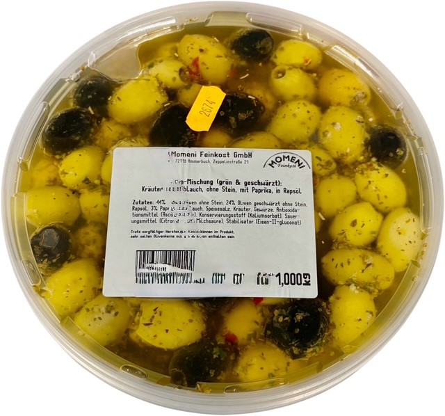 Oliven- Mix (grün & schwarz): Kräuter & Knoblauch, mit Paprika