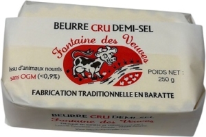 Rohe gesalzene Butter ist Butter, die aus roher Kuhmilch hergestellt wird. Im Fass hergestellt, ist es sehr geschmacksintensiv mit Noten von Haselnüssen.