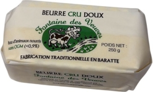 Rohe ungesalzene Butter ist Butter, die aus roher Kuhmilch hergestellt wird. Im Fass hergestellt, ist es sehr geschmacksintensiv mit Noten von Haselnüssen.