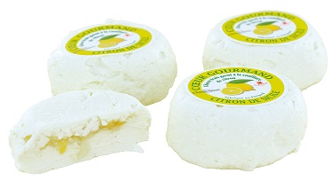 Kleine handgeschöpfte Ziegenkäse, gefüllt mit Zitronenkonfitüre. Der geschmeidige Teig hat einen feinen, süßen Geschmack.