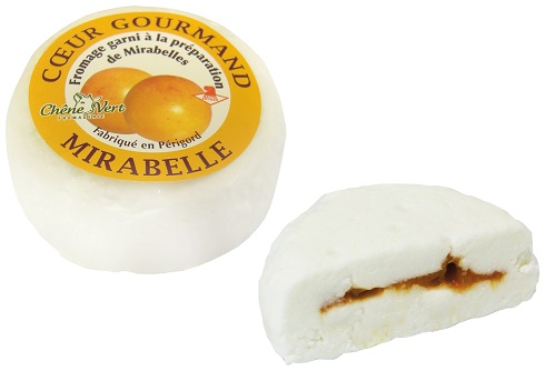 Kleine handgeschöpfte Ziegenkäse, gefüllt mit Mirabellenkonfitüre. Der geschmeidige Teig hat einen feinen, süßen Geschmack.