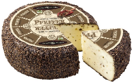Wie der Name schon verrät, kommen Pfefferfans beim „Pfefferkäse“ voll auf ihre Kosten. Er wird von einem Mantel aus grünen, roten und schwarzen Pfefferkörnern umschlossen. Diese Rinde ist essbar und hinterlässt einen würzig-scharfen Nachgeschmack. Das Innere des Käses ist hellgelb, weist eine Bruchlochung auf und wird ebenfalls von Pfefferkörnern durchzogen. Die Konsistenz am Gaumen ist weich, geschmeidig und elegant. Aroma und Geschmack des Käses werden vom Pfeffer dominiert.